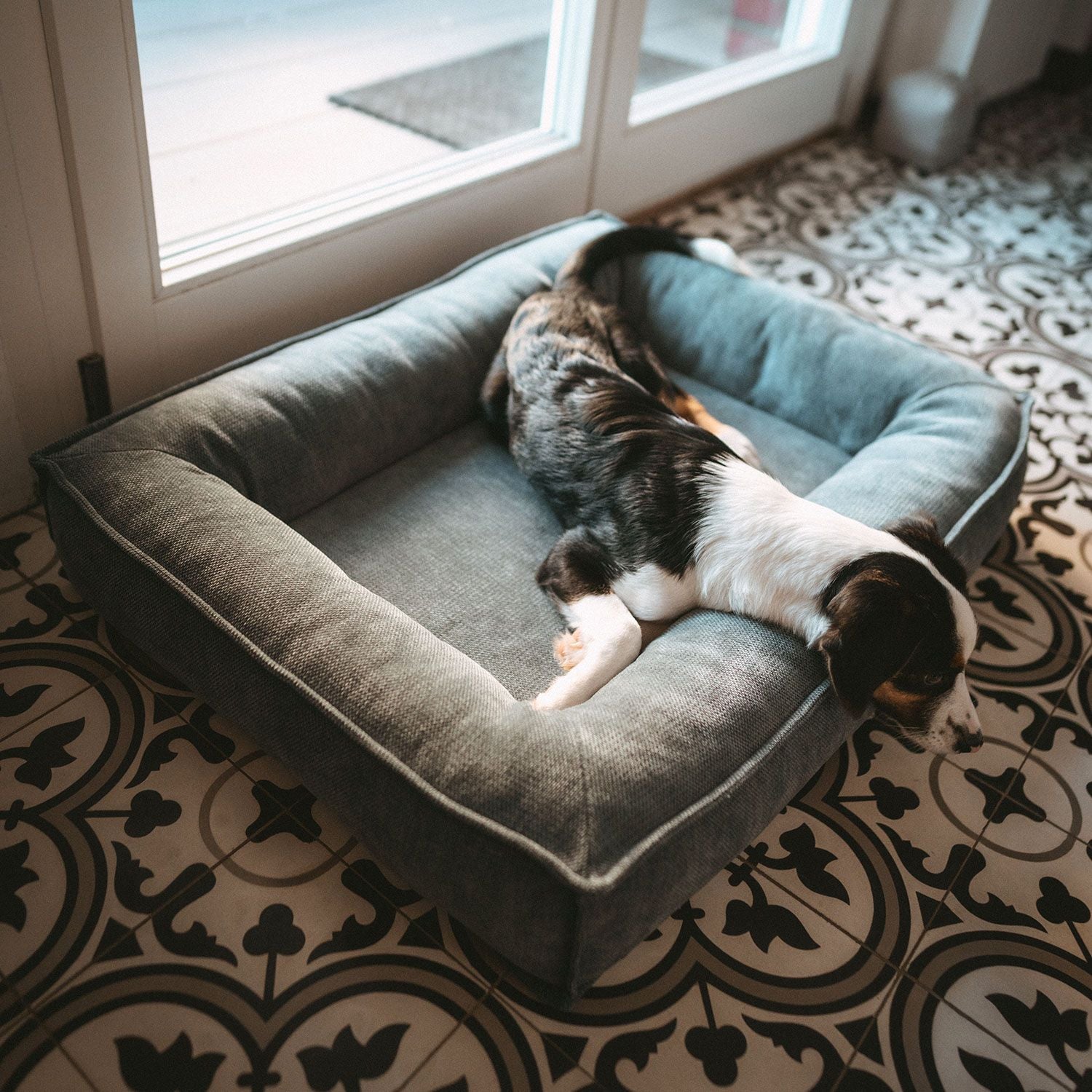 Az ergonomikus MELUN kutyafekhely kényelmes pihenőhelyet kínál négylábú barátainak. A bársonyosan puha felület a kikapcsolódásra csábít, és kellemes fekvési élményt biztosít. Belül egy memóriahab matrac támogatja az ízület- és hátbarát testhelyzetet.